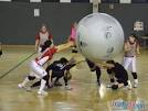 Consiste en que tres equipos se enfrentan con una pelota de gran tamaño, como esta:
